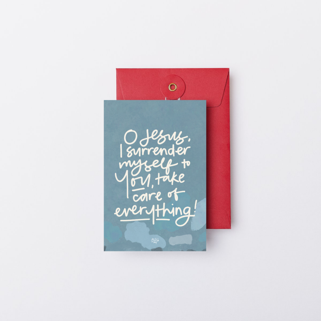 The Surrender Prayer is a simple yet powerful act of faith - especially in times when life feels uncertain or out of our hands. Rooted in trust and abandonment to Divine Providence, this art print invites you to lay your worries at the feet of Jesus and allow Him to take care of everything.